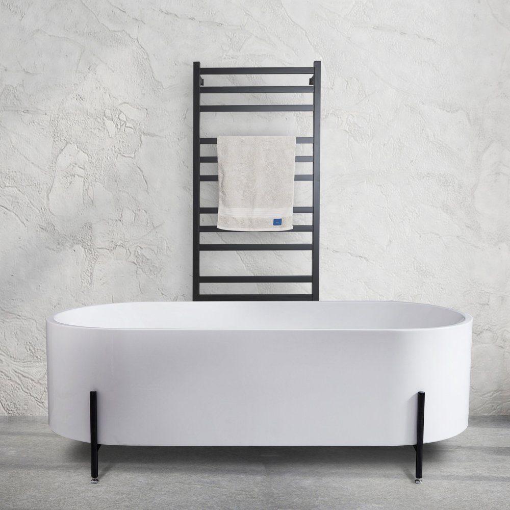 Badkaret står stadigt tack vare de rostfria stödbenen som sitter synligt på badkaret. Blandare och handdukstork ingår ej, men kan köpas separat. Köp handdukstorken här.