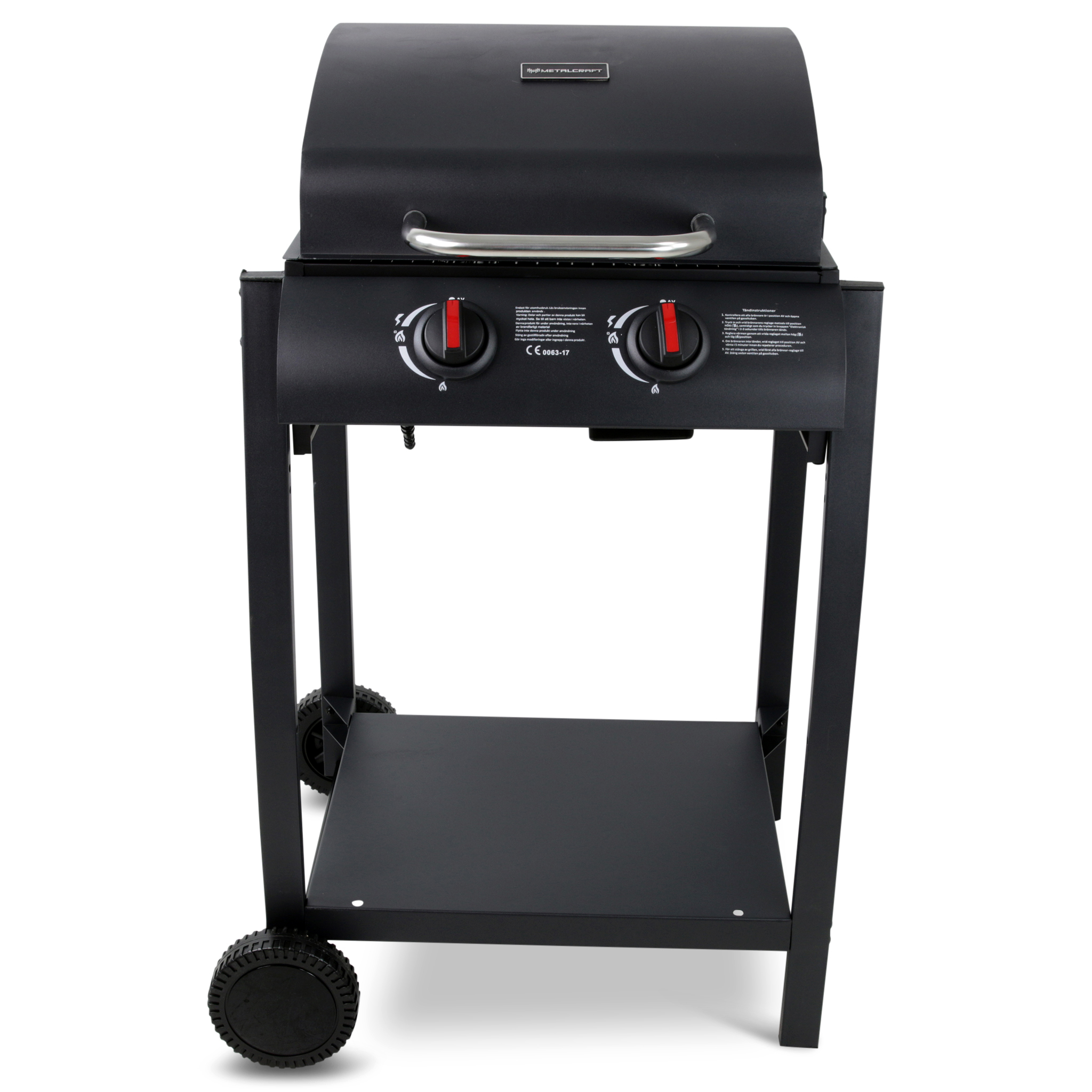 Prisvärd gasolgrill med 2 rostfria brännare på totalt 6 kW effekt. Matt svartlackerat pulverlackat lock i stål och rostfritt handtag. Trots den lilla formatet har denna grill en grillyta på 48x42cm.