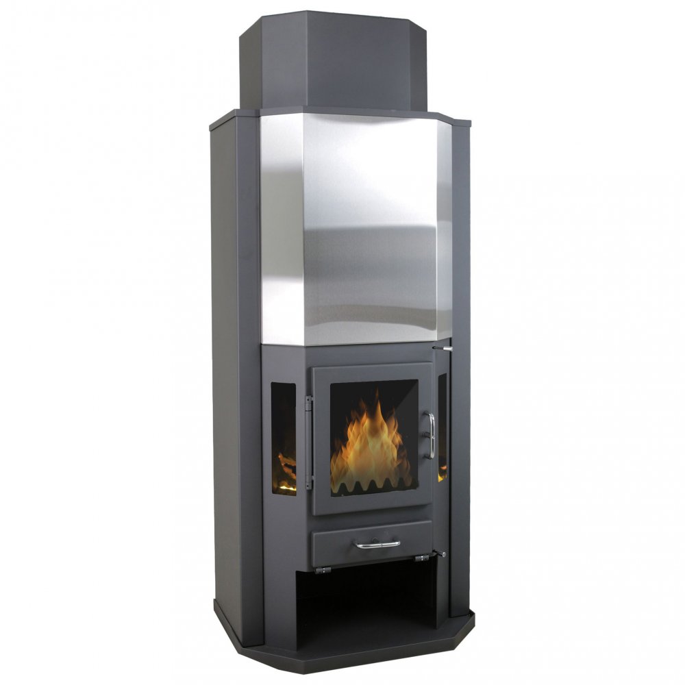 Braskaminen Högfors passar utmärkt för att att värma en större villa eller fritidsboende. Kaminen är lämplig för alla typer av bränsle: ved, kol, briketter, torv. Anslutning till skorsten/rökrör görs med standarddimension på skorsten, 150 mm.
