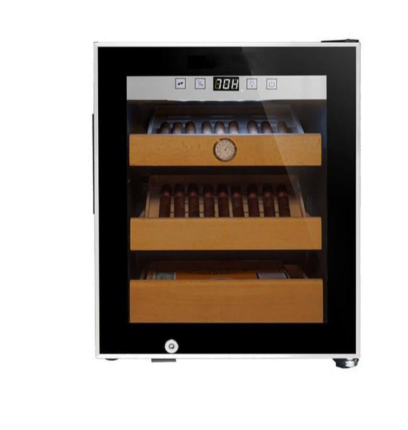 Cigarrhumidor 34L – Elektrisk cigarrförvaring med 3 bokträshyllor och glasdörr