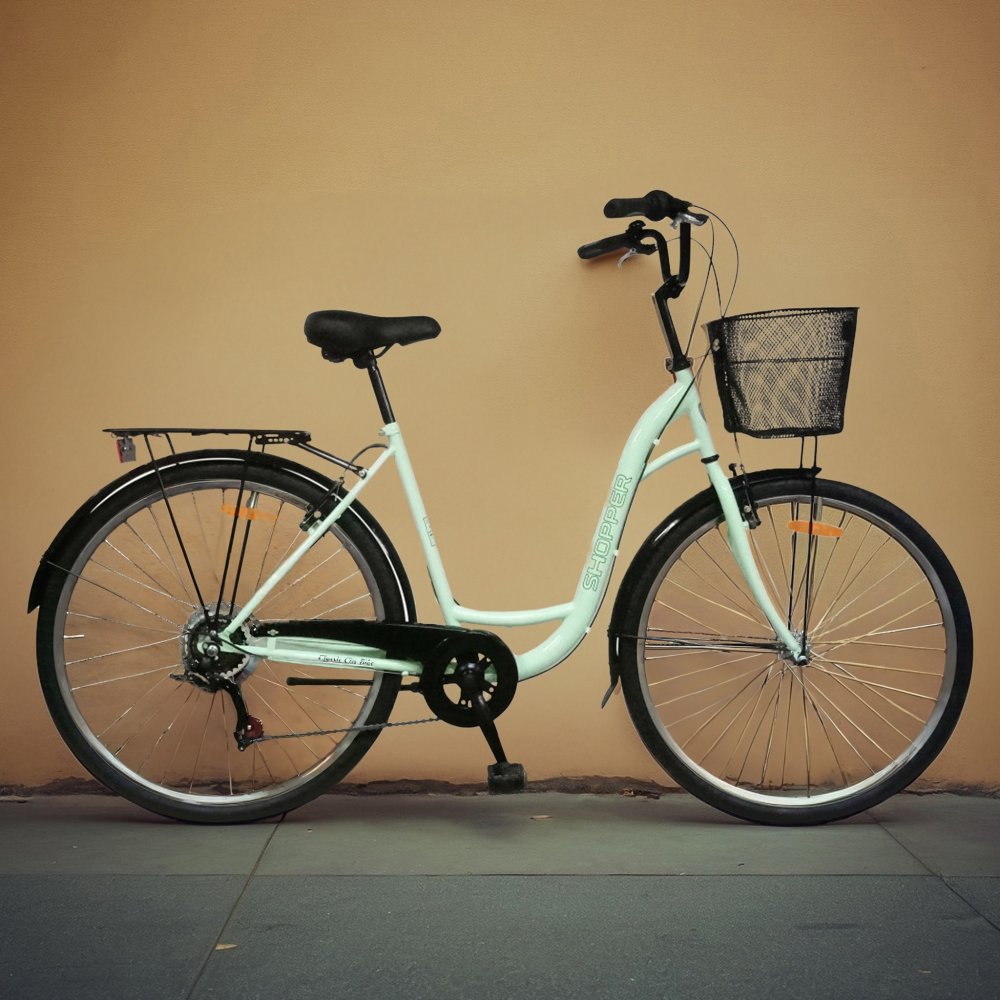 Damcykel 28" | 6 växlar | Cykelkorg | Shopper - Pistasch