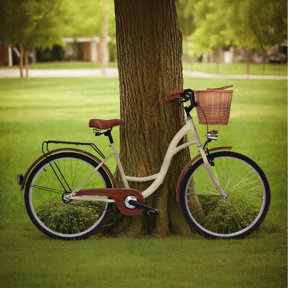 - Klassisk Stil: Gräddvit damcykel med tidlös design.