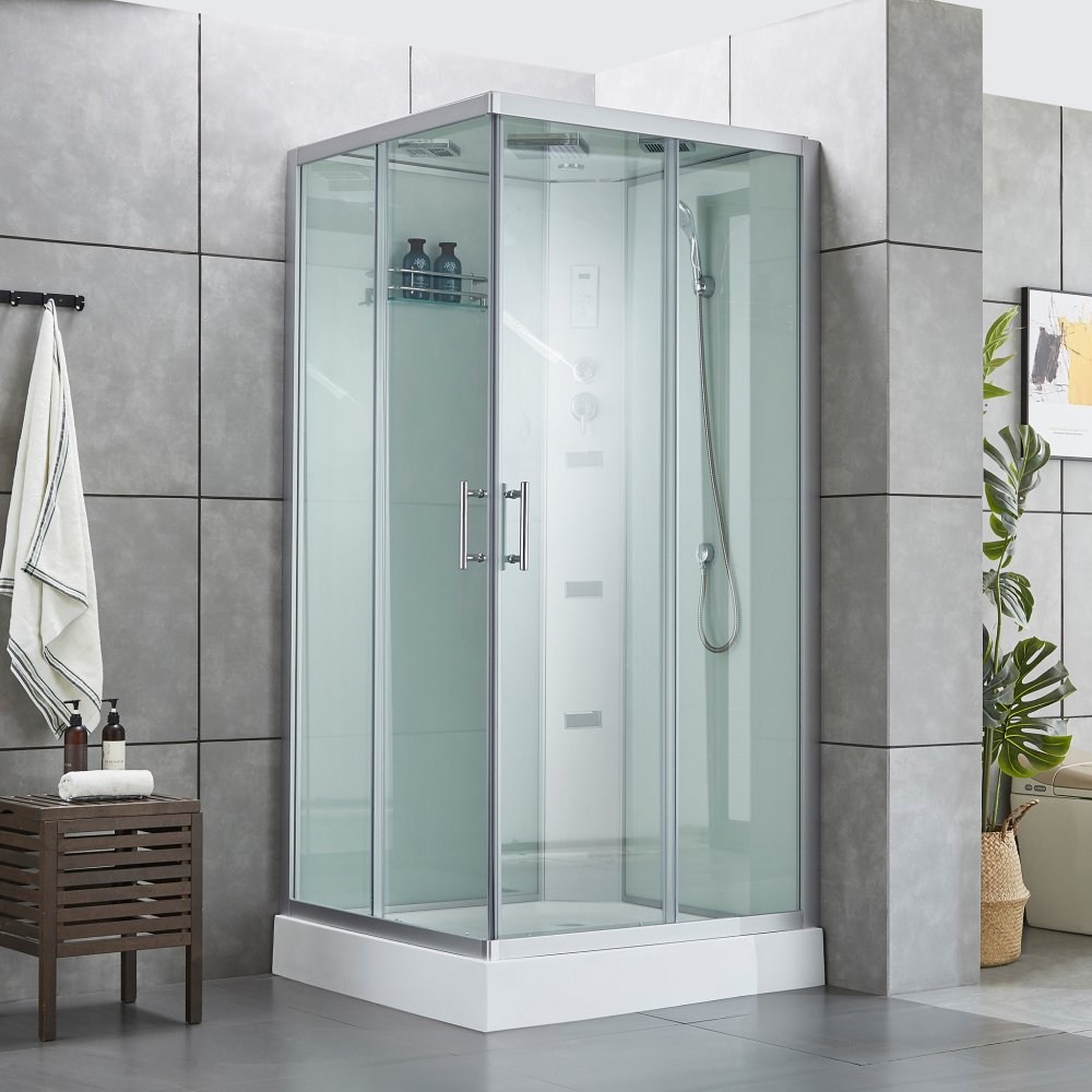 Lyxig duschkabin med mängder av funktioner och inställningar som gör att du kan skapa dig ditt eget hemma-spa! Duschen är utrustad med integrerad takdusch, handdusch och tre stycken munstycken för ryggmassage. Du växlar enkelt mellan dessa funktioner med hjälp av duschens reglage. Dessutom har kabinen ytterligare lyxig utrustning som bluetooth, fläkt, högtalare, radio och belysning. Allt styrs via den inbyggda datorpanelen. En hylla i glas för hygienartiklar medföljer också.
