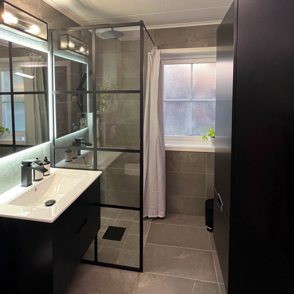 Duschvägg med svart spröjs | 6mm säkerhetsglas