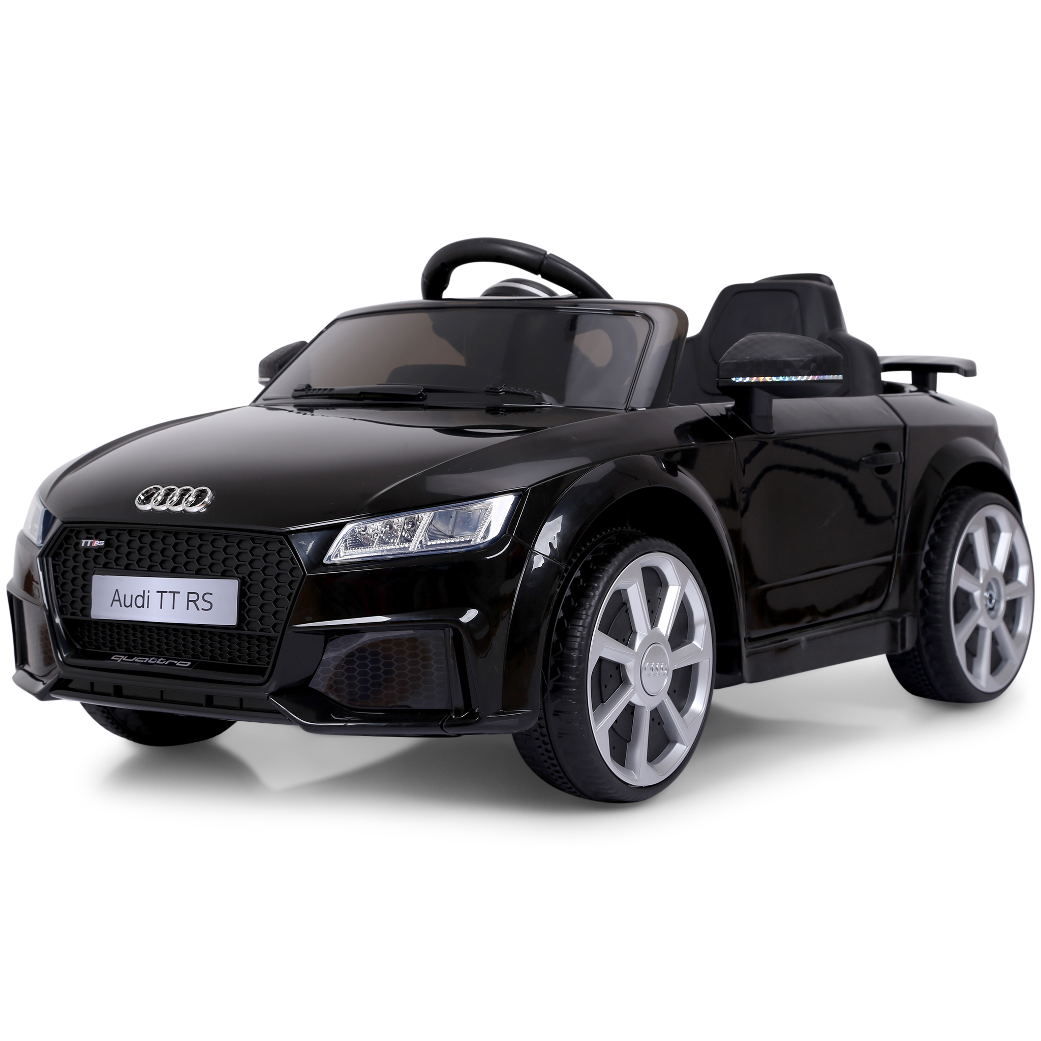 Trots det låga priset, är denna modell Audi TTRS elbil för barn extrautrustad med säkerhetsbälte, 2.4Ghz trådlös fjärrkontroll, 3 hastighetslägen (2 lägen framåt, samt bakåt), LED-belysning, MP3/USB/SD-port, inbyggda högtalare, enkel knappstart mm. Ljudvolymen på bilen kan justeras, maximal ljudnivå är 110 dB. Batteriladdare medföljer.