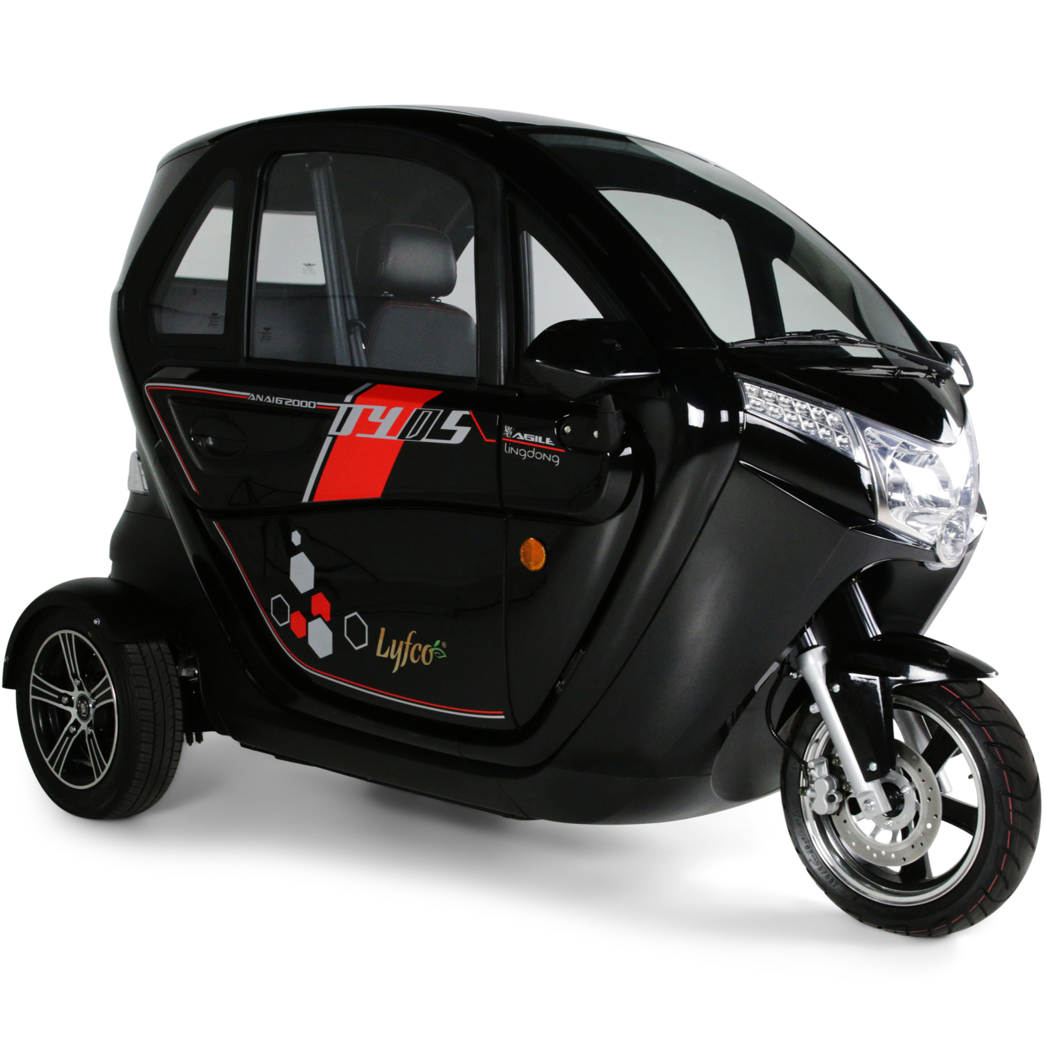 Elmopedbil trehjulig 2000W | Klass 1 | 45 km/tim | Svart