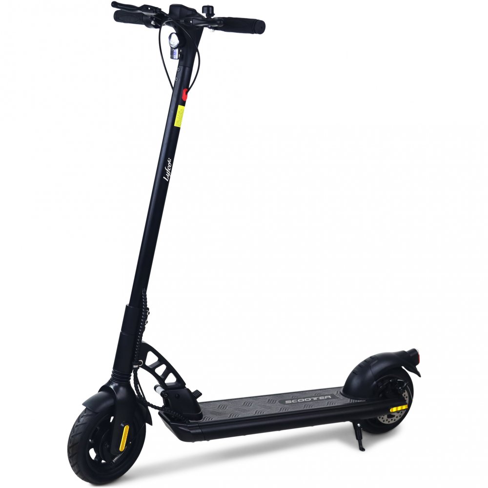 Elscooter med 250 W borstlös hjulnavsmotor som går i upp till 25 km/tim men är begränsad med en spärr som gör att den endast går i 20 km/tim, vilket är den högsta godkända hastigheten för elscootrar för att framföras på allmän cykelväg enligt svensk lag. Elscootern är ett mycket praktiskt transportmedel som tar sig fram snabbt och smidigt och knappt tar någon plats att förvara. Scootern är utrustad med 8,5" däck varav framhjulet är ett luftfyllt däck och bakhjulet är ett slanglöst, punkteringsfritt däck.