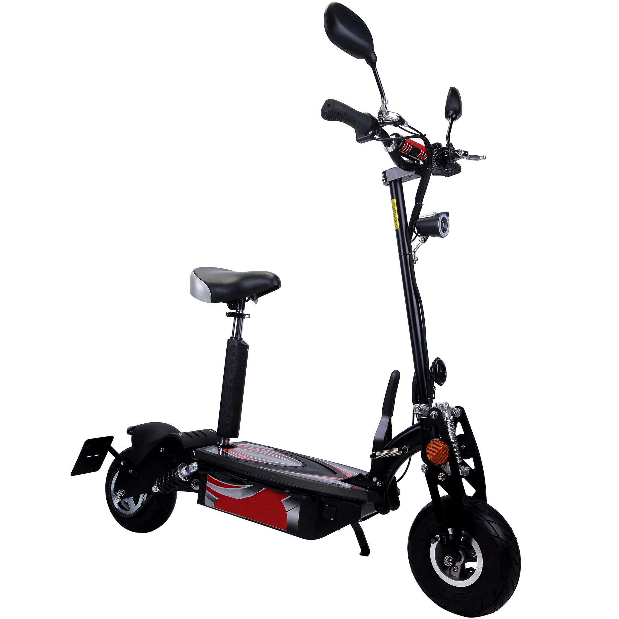 De flesta liknande 1000W elscootrar på marknaden säljs i enklare utförande med te x standardfjädring fram och/eller bak, mindre hjul på billig stålfälg och utan digital display med hastighetsmätare mm.