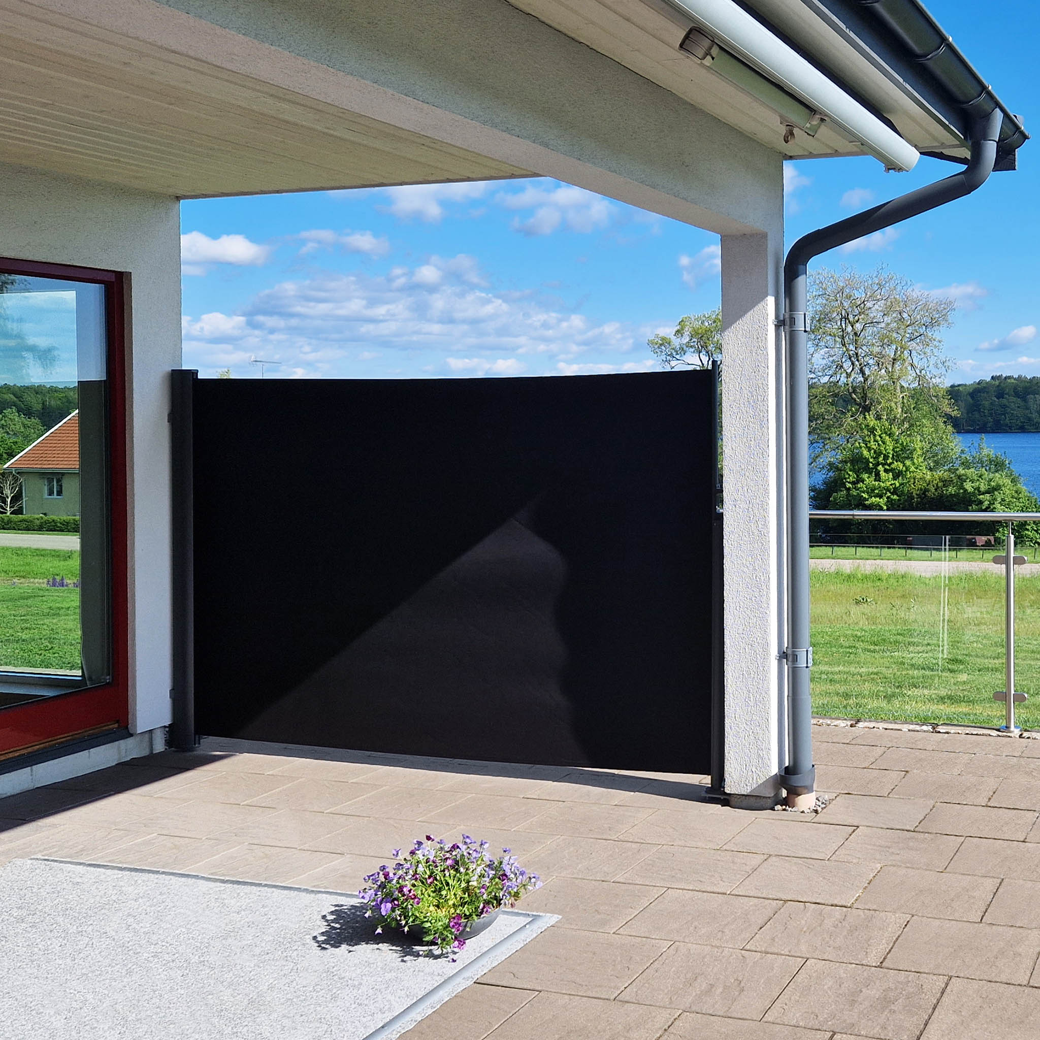 En sidomarkis är en perfekt lösning om du vill skärma av din uteplats från insyn eller skydda mot sol och vind och skapa lä på din terrass eller balkong. Sidomarkisens kassett fästes i valfri vägg och markisen dras sedan ut horisontellt till önskad längd (maxlängd 3 m). Stolpen som man klickar fast den utdragna markisen i är flyttbar och kan fästas med skruv i terrassgolvet på valfritt avstånd upp till 3 meter. Höjden på denna markis är hela 1,8 m. Den generösa höjden ger ett optimalt skydd om du är ute efter att fånga upp så mycket sol som möjligt och skapa skugga på din uteplats. De flesta andra butiker på marknaden erbjuder endast sidomarkiser med en höjd upp till 1,6 m.