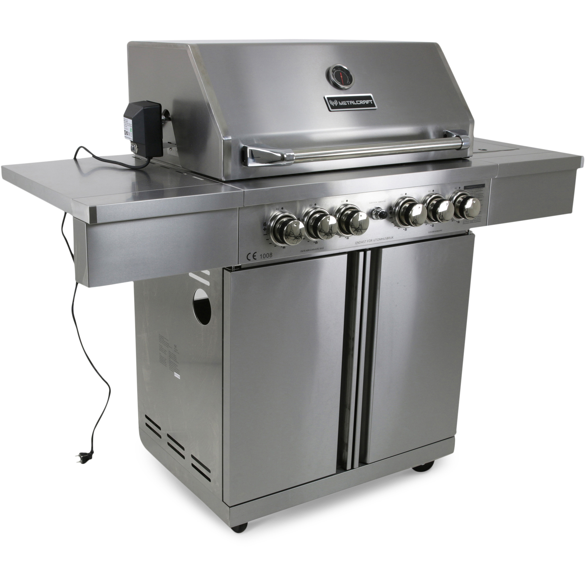 I Metalcrafts Malibu och Nashville gasolgrillar är hela grillen tillverkad i rostfritt stål för hög hållbarhet. Hela skåpet (även sidoväggar, baksida och innegolv), dörrar (inklusive insidan av dörren), avlastningsbord, handtag, alla skruvar och yttre locket är helt i rostfritt stål. Även 4 huvudbrännare, sidobrännare, flametamers, grillgaller (I två rejäla delar - vikt 7kg), grillspett och grillskålen (för fettuppsamling) är samtliga rostfritt stål vilket kännetecknar en grill där genomgående hög kvalitet på material har använts. Även varmhållningsgallret och gallret till sidobrännaren är i rostfritt stål.