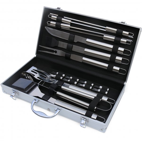 Set med grillverktyg i rostfritt stål som innehåller allt du behöver för att bli kvällens grill-master! Verktygen har en snygg, stilren design helt i rostfritt stål och kommer i en praktisk väska som gör att du enkelt och organiserat kan förvara dina grilltänger och verktyg mellan grilltillfällena.