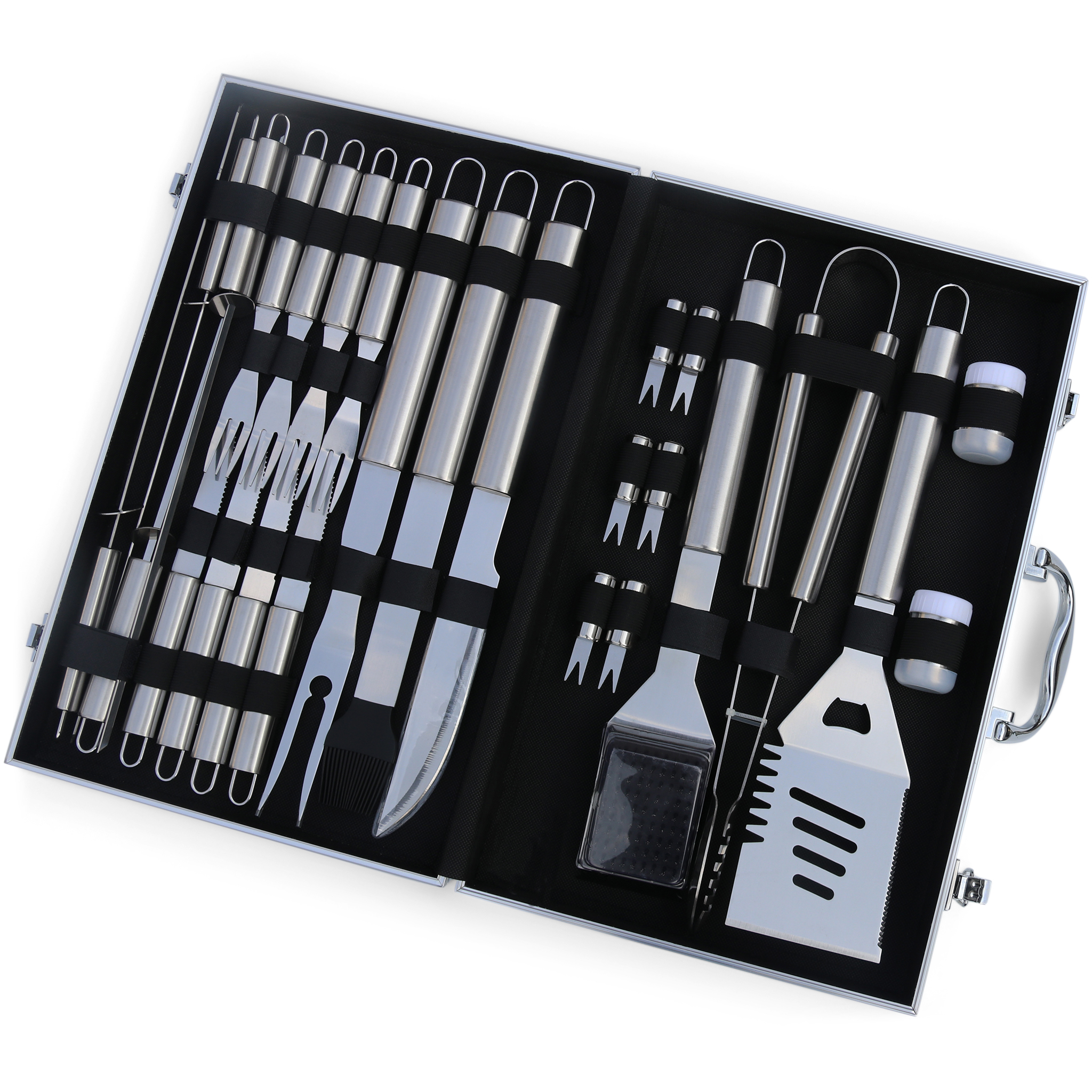 BBQ set med grillverktyg i 26 delar. Helt i rostfritt stål.