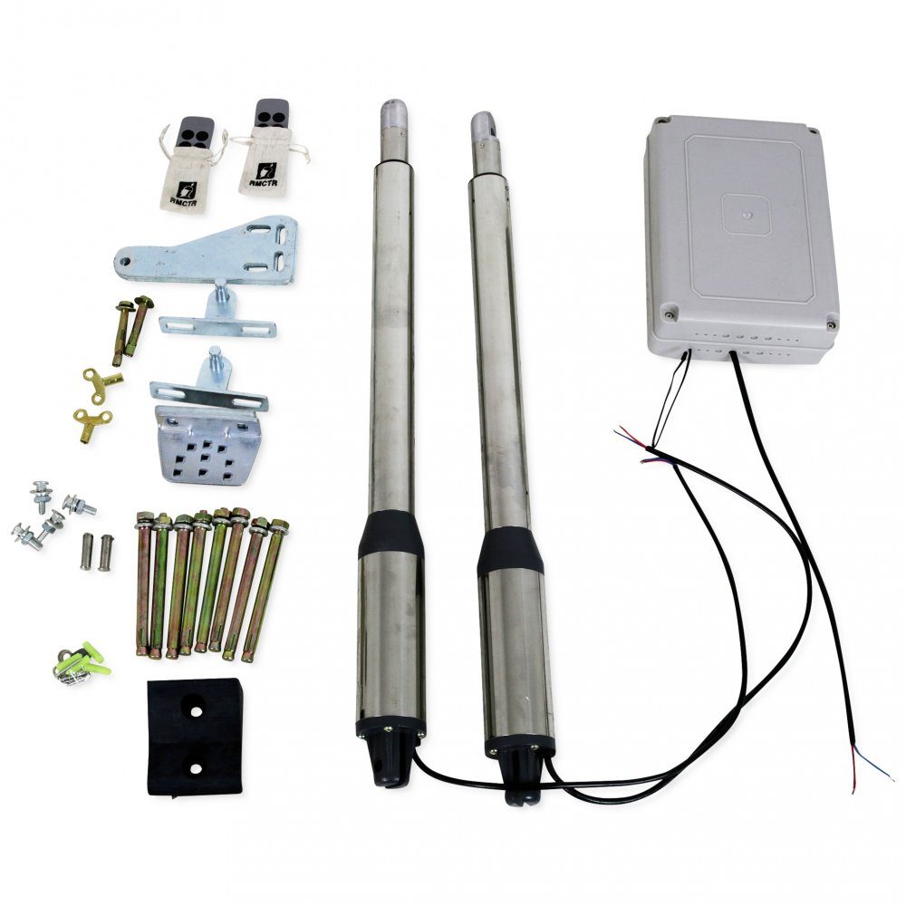 Komplett paket motorer till svänggrindar/slaggrindar som ger dig en motoriserad grind. Paketet innehåller 2 st grindmotorer, 2 st fjärrkontroller och fästen.