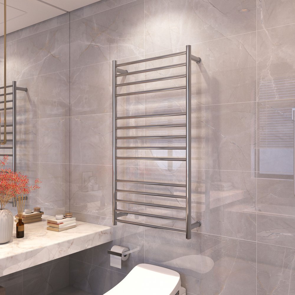 Finns det något bättre än att svepa in sig i en varm handduk efter morgonduschen? Det enklaste sättet att få uppleva det efter varje dusch är att installera en handdukstork. Detta är en elektrisk handdukstork i blankpolerat rostfritt stål. Handdukstorken har en stilren och lyxig design som gör att den passar utmärkt in i de flesta badrum.