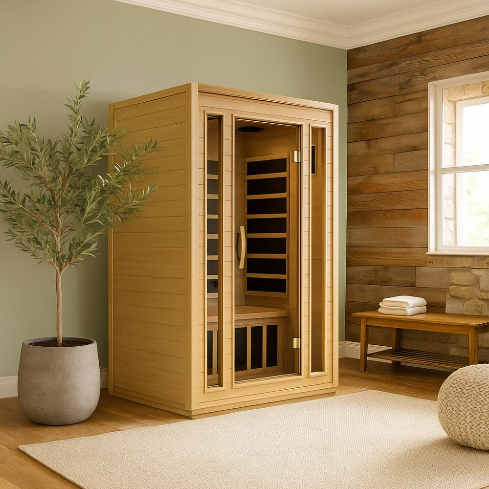 - Kompakt IR-bastu för 2-3 personer – perfekt för mindre utrymmen