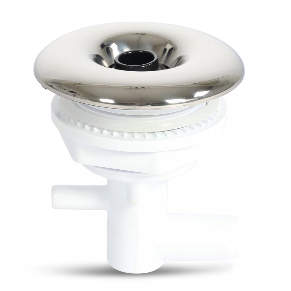 4 tums justerbart munstycke i rostfritt stål. Att vattenutloppet på munstycket är justerbart innebär att du själv kan ställa in riktning på jet-strålen.Passar alla våra spabad.