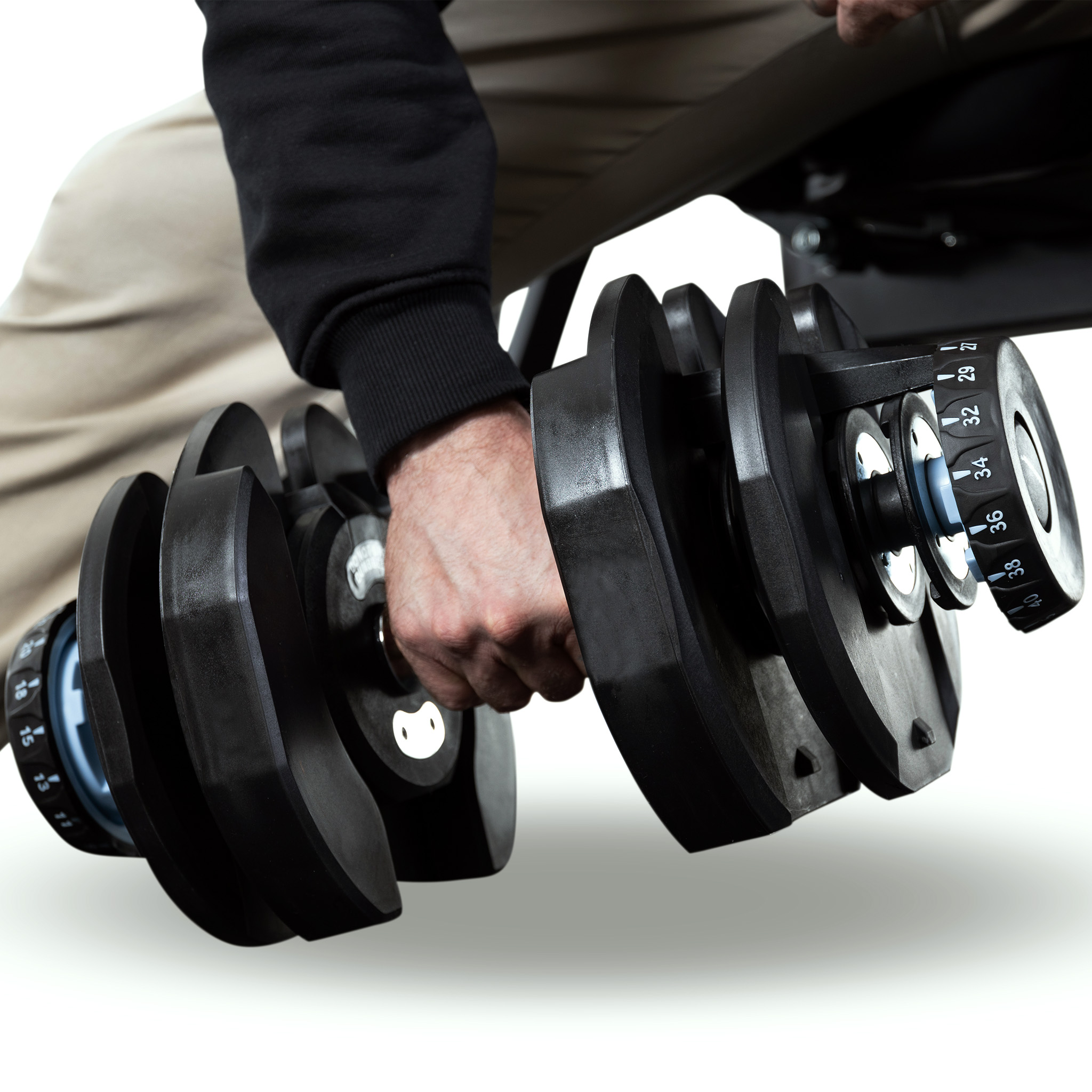 - 17 viktnivåer på varje hantel (3,7-38,8 kg)