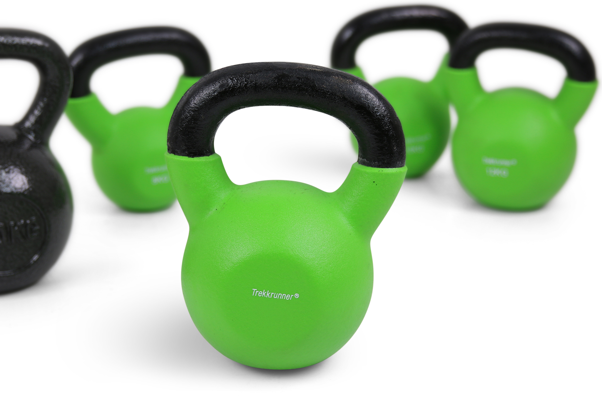 Kettlebell gjuten i ett stycke av gjutjärn. Klädd med extra tjockt lager Neopren för att skydda ditt golv och annan utrustning. Finns i storlek 8-16kg.