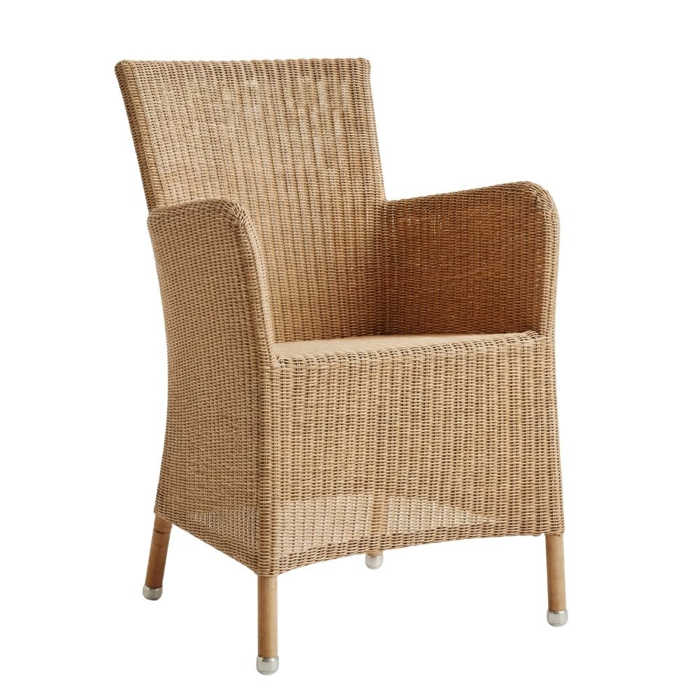Den naturfärgade konstrottingen ger ett varmt och levande uttryck som smälter in i både moderna och klassiska miljöer. Den höga ryggen och integrerade armstöden skapar en ombonad och bekväm sittupplevelse – perfekt för långa middagar och sociala stunder.
