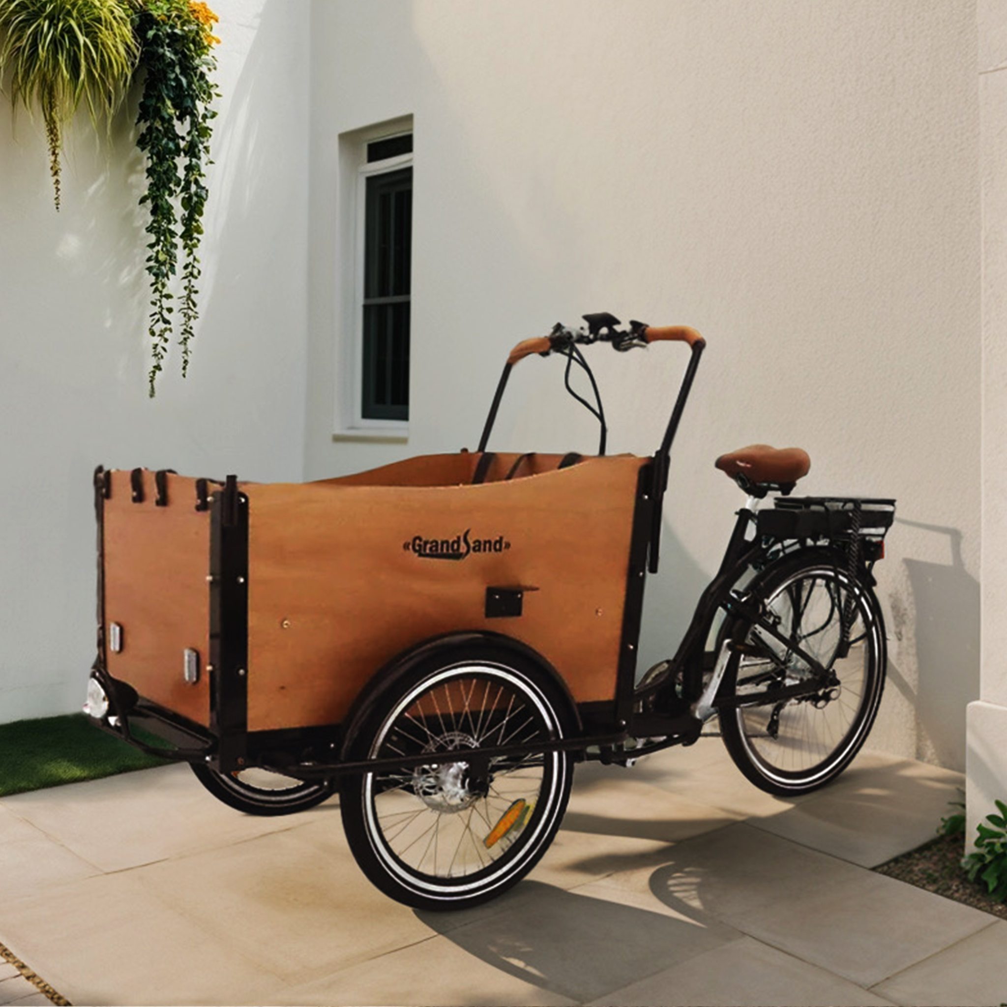 Eldriven lådcykel med 12,8 Ah litumbatteri - Brun trälåda
