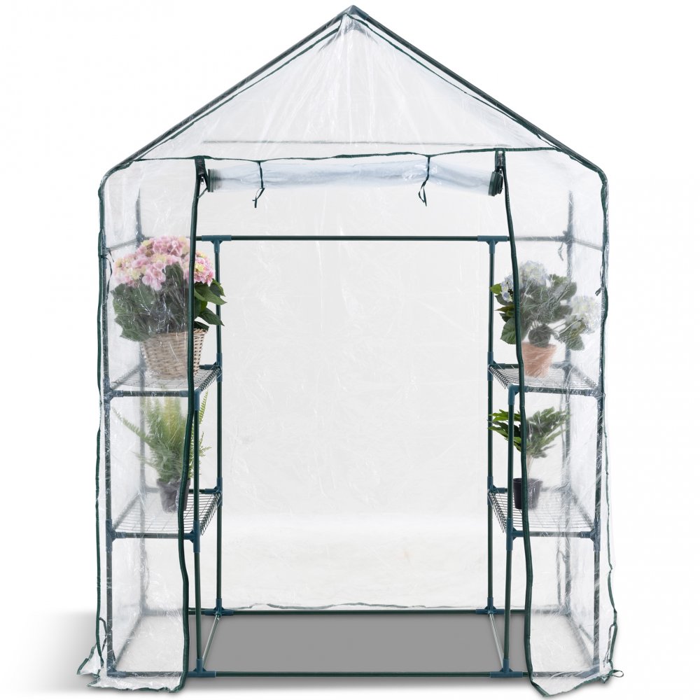 Detta lättmonterade växthus är av en mindre modell för den lilla trädgården, men ger dig ändå möjlighet att stå rakt inuti med sin generösa takhöjd. Inbyggda hyllplan gör att du kan odla och plantera i flera nivåer och med hjälp av dragkedjorna i överdraget kan du enkelt öppna upp framsidan på växthuset.