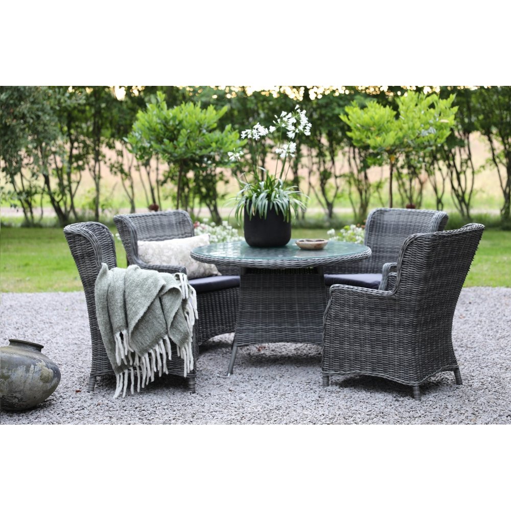 Matgrupp Ø110 cm | Grå konstrotting | Aluminium & glasskiva | Jacksonville
