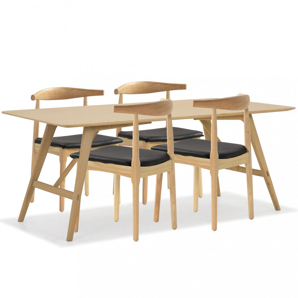 De fyra medföljande stolarna Gillstad är en symbios av stil och funktionalitet som utgör det perfekta tillägget till ditt hem. Tillverkade av högkvalitativt trämaterial lovar dessa stolar både långvarig hållbarhet och en elegant design. Det svarta PU-lädret och naturliga träfärgen utgör en stilren och minimalistisk kombination som passar perfekt in i en rad olika inredningsstilar.