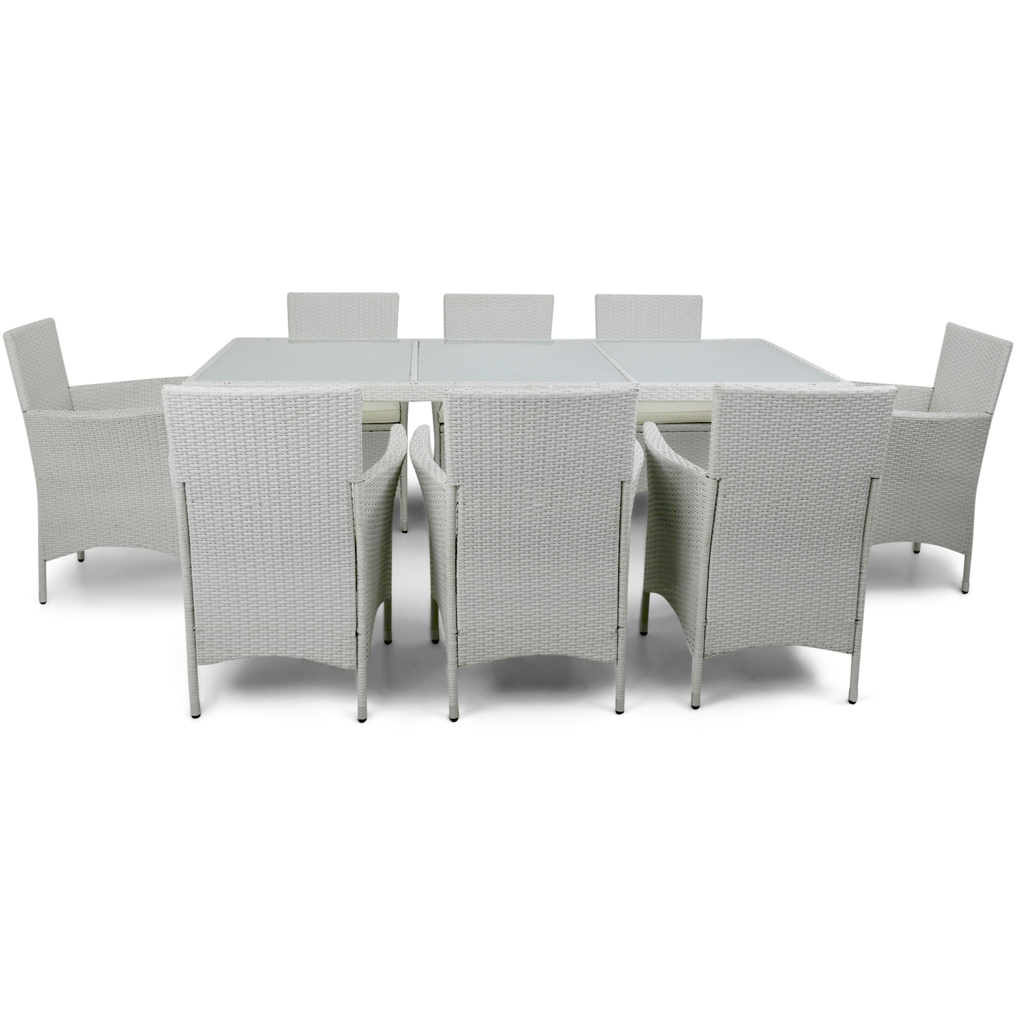 - Stilig matgrupp utemöbler för 8 personer i handvävd vit konstrotting
