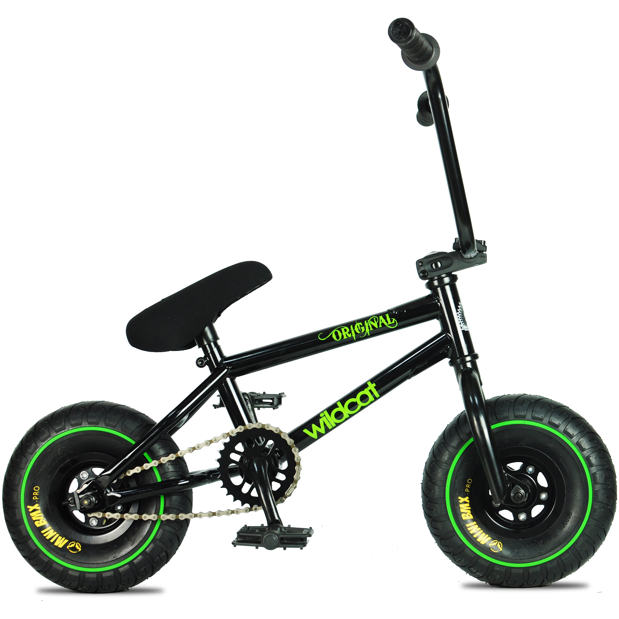 Tuff Mini BMX cykel för trick, bana och ramp. En Mini-BMX är precis som det låter - en jätteliten BMX cykel. Hjulen är endast 10" stora och betydligt bredare än vanliga cyklar. Dessutom är styret långt. Sadel och trampor är däremot i vanlig storlek. Det finns ingen broms på cykeln. Kan användas både av barn och vuxna för att trickcykla i ramp eller bana. Det är alltså trots storleken inte tänkt som en cykel för de allra minsta barnen.
