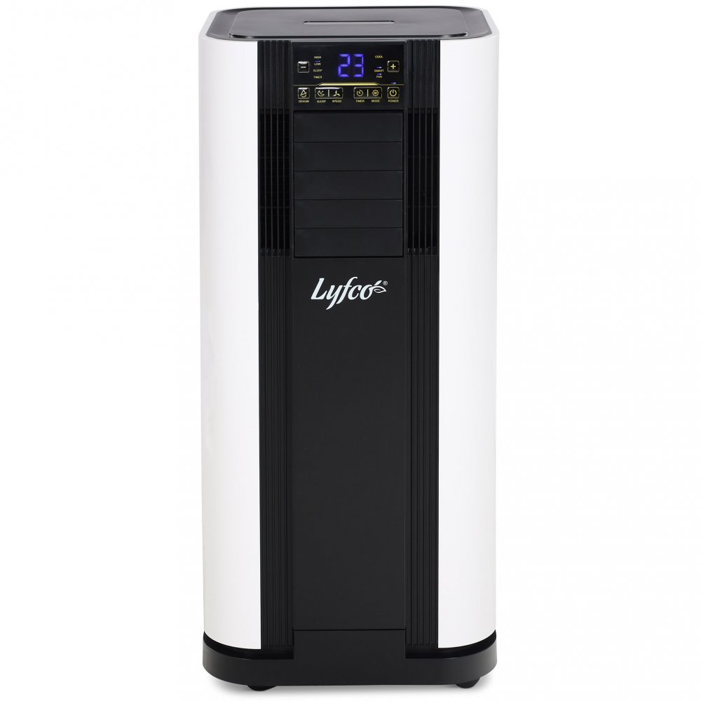Portabel AC i snygg design på 2640W (ca 9000 BTU) kyleffekt som drivs av kompressor. Kyler upp till 37m² yta. Perfekt för att kyla en mindre lägenhet eller några rum i ett hus under varma sommardagar. ACn är helautomatisk, vilket innebär att du bara ställer in önskad temperatur så sköter luftkonditioneringen resten. ACn kan styras via Wifi, med den medföljande fjärrkontrollen eller via den tydliga LED-displayen med touch-knappar.