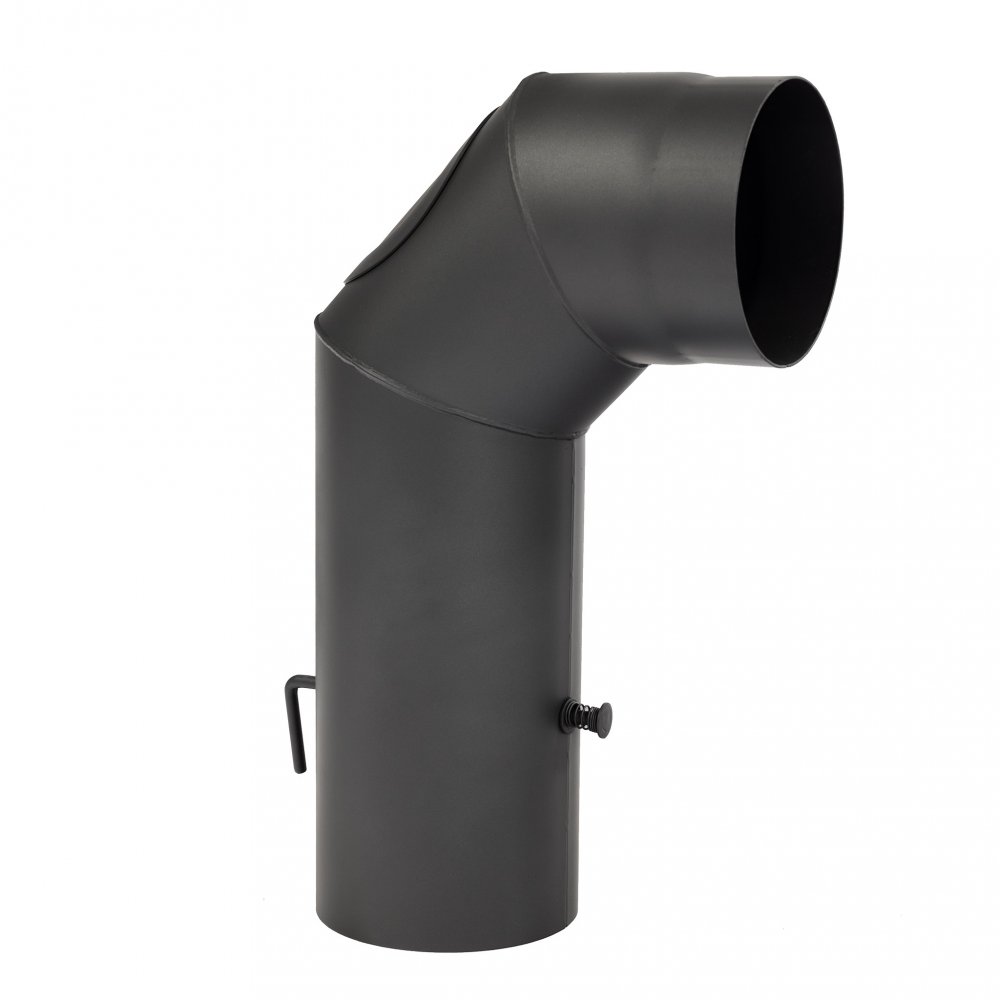 Rökrör vinkel 90 grader, med spjäll och rensningslucka. Diameter 150mm.