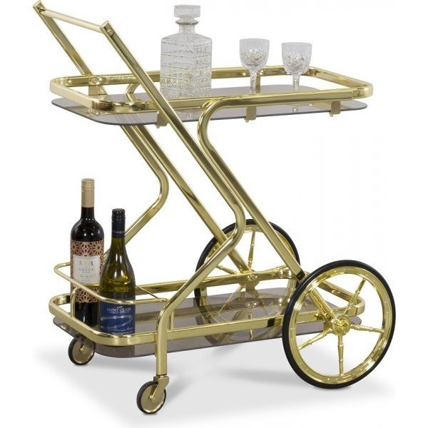 Serveringsvagn i mässingsfärgad metall – Rökfärgat glas | Klassisk & elegant design