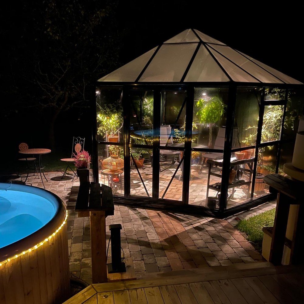 Orangeri och lusthus 12,6m² | Sexkantigt växthus | 4mm säkerhetsglas
