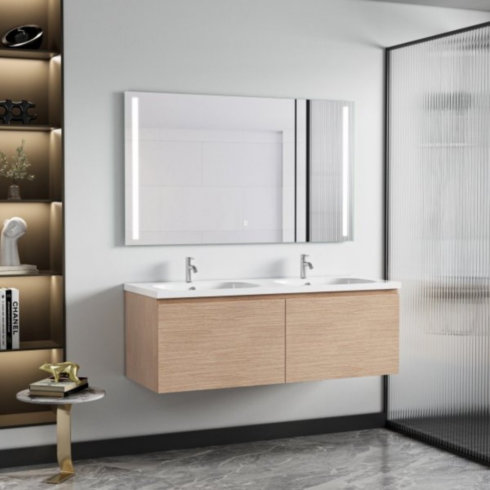 Siena 120 cm Badrumskommod med LED-spegel | Dubbla Tvättställ | Vägghängd
