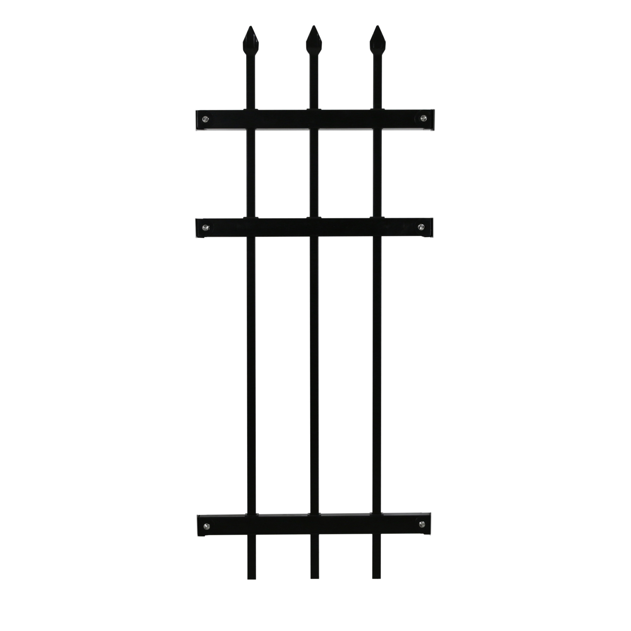 Trots det låga priset, har detta smidesstaket 3 horisontella liggare. Liggarna har rejäla dimensionen 40x40mm och godstjockleken är 1.2mm. De vertikala stängerna har dimensionen 19x19mm med godstjocklek 1.0mm.