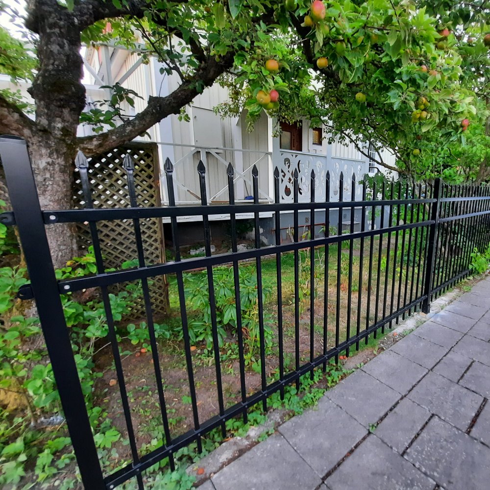 Vi tackar våra kunder Eric och Åke för de fina bilderna på detta smidesstaket! På några av produktbilderna visas staket med höjd 120cm. Dvs detta staket är något högre än det på vissa av bilderna, 150cm. På några bilder visas även stolpe samt markfäste. Stolpen och markfästet är tillbehör som säljs separat.