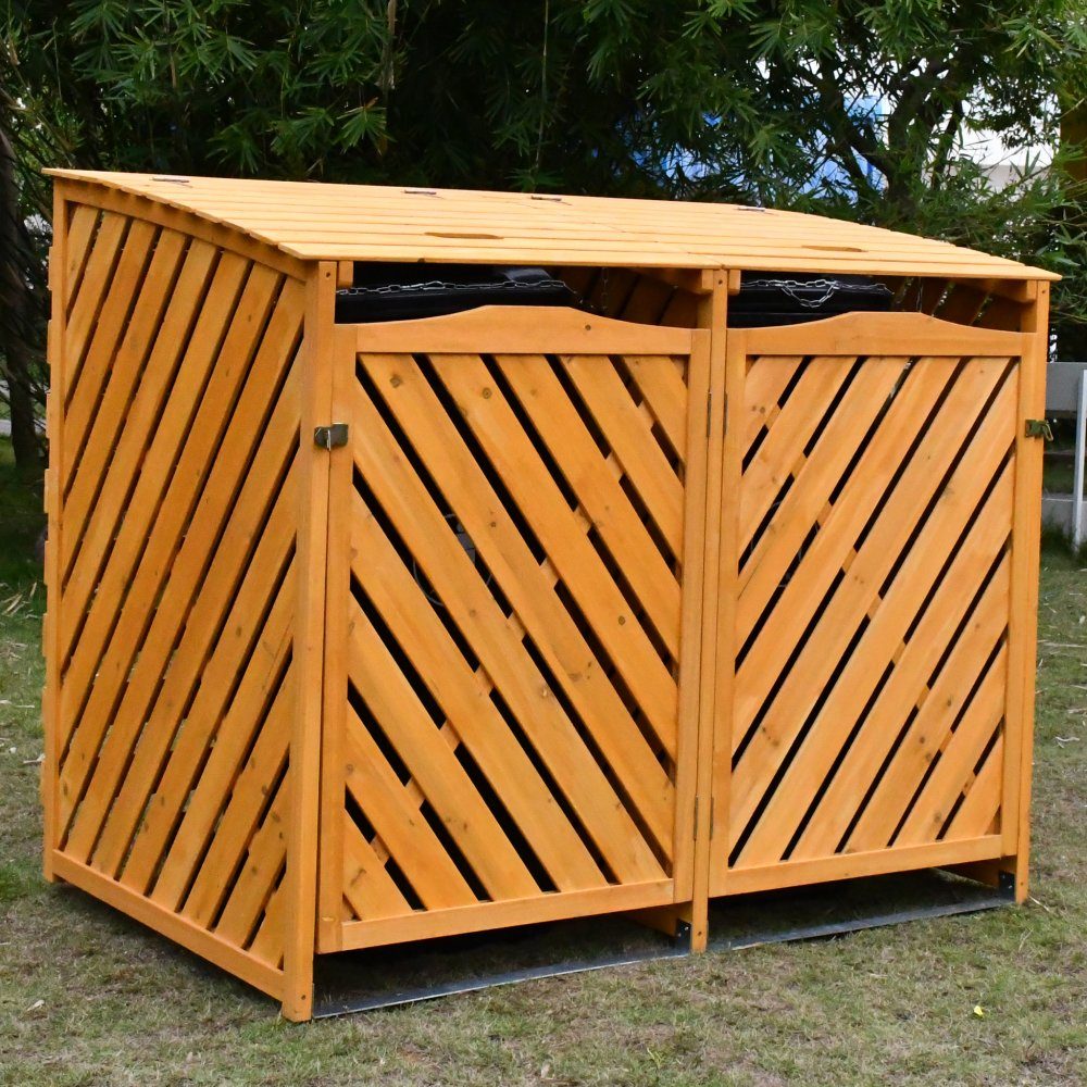 Detta soptunneskydd är mer än bara en praktisk lösning; det är ett tillägg som förskönar din utemiljö. Tillverkad av 100% FSC-certifierat trä ser detta sopskjul inte bara bra ut, utan är också en investering i hållbarhet. De dubbla dörrarna, förstärkta med metallhörn och kedjor, samt en robust mellanvägg som gör att sopkärlen står stadigt, borgar för långvarig användning och skydd. Med sina generösa mått på 149 cm i bredd, 92 cm i djup och 122 cm i höjd, rymmer skjulet dina sopkärl utan problem och du får enkelt undan de fula kärlen på ett snyggt och propert sätt.