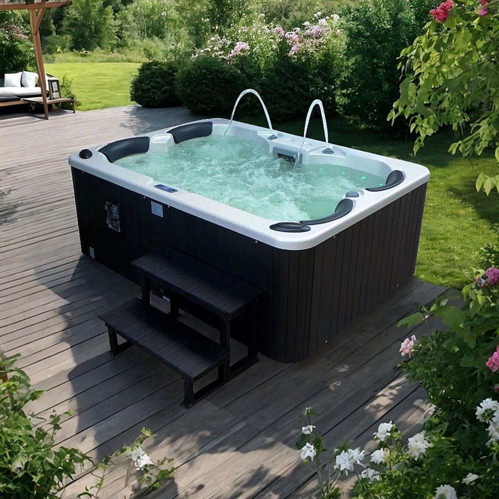 Spabadet är 210 x 152 cm stort och 78 cm högt. Badet rymmer upp till 4 personer. Vattenvolym ca 700 liter vid normal fyllnadsgrad (ej max vad som får plats i karet, som vissa tillverkare uppger).