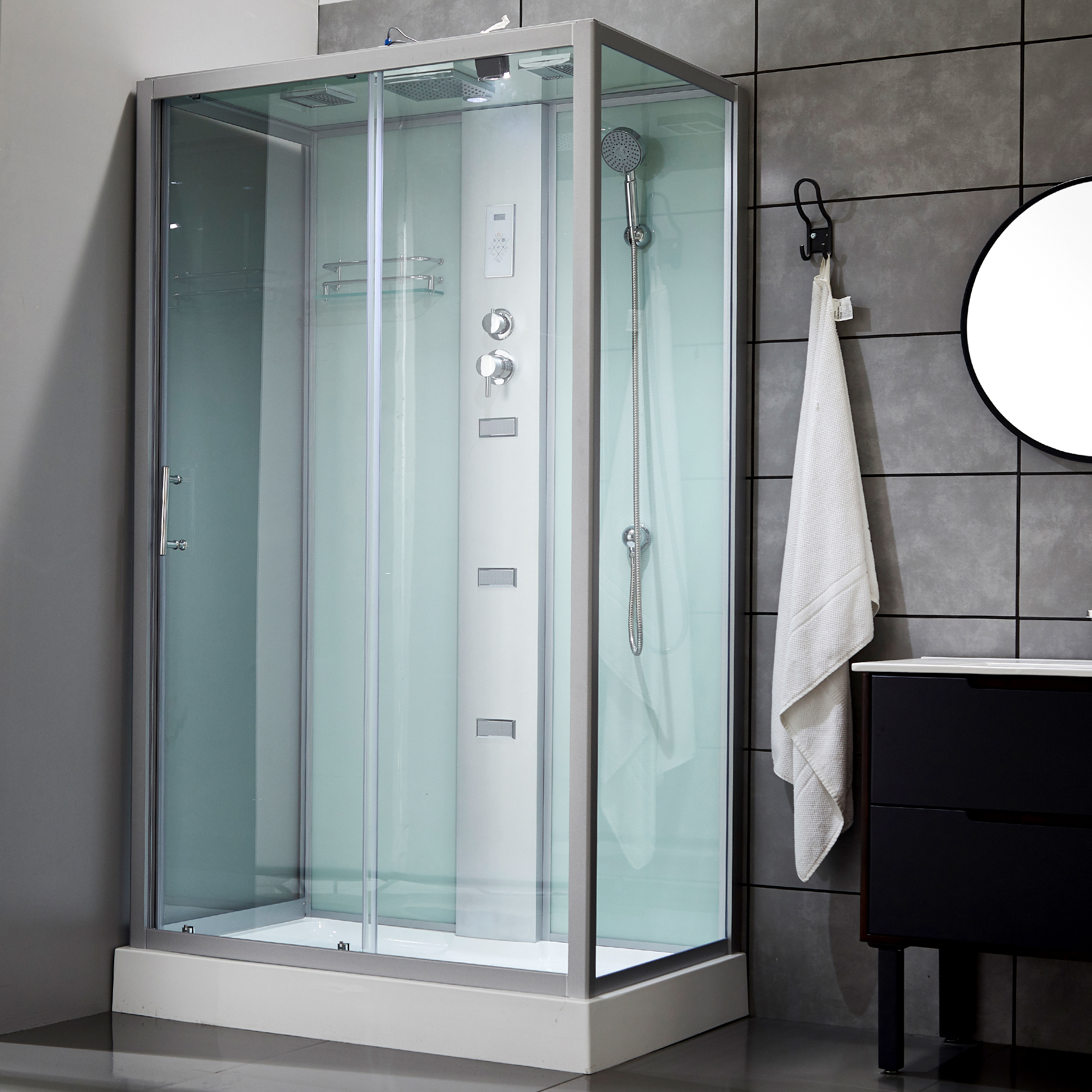 Förutom olika duschfunktioner har kabinen även ytterligare lyxig utrustning som bluetooth, fläkt, högtalare, radio och belysning. Allt styrs via den inbyggda datorpanelen. En hylla i glas för hygienartiklar medföljer också.