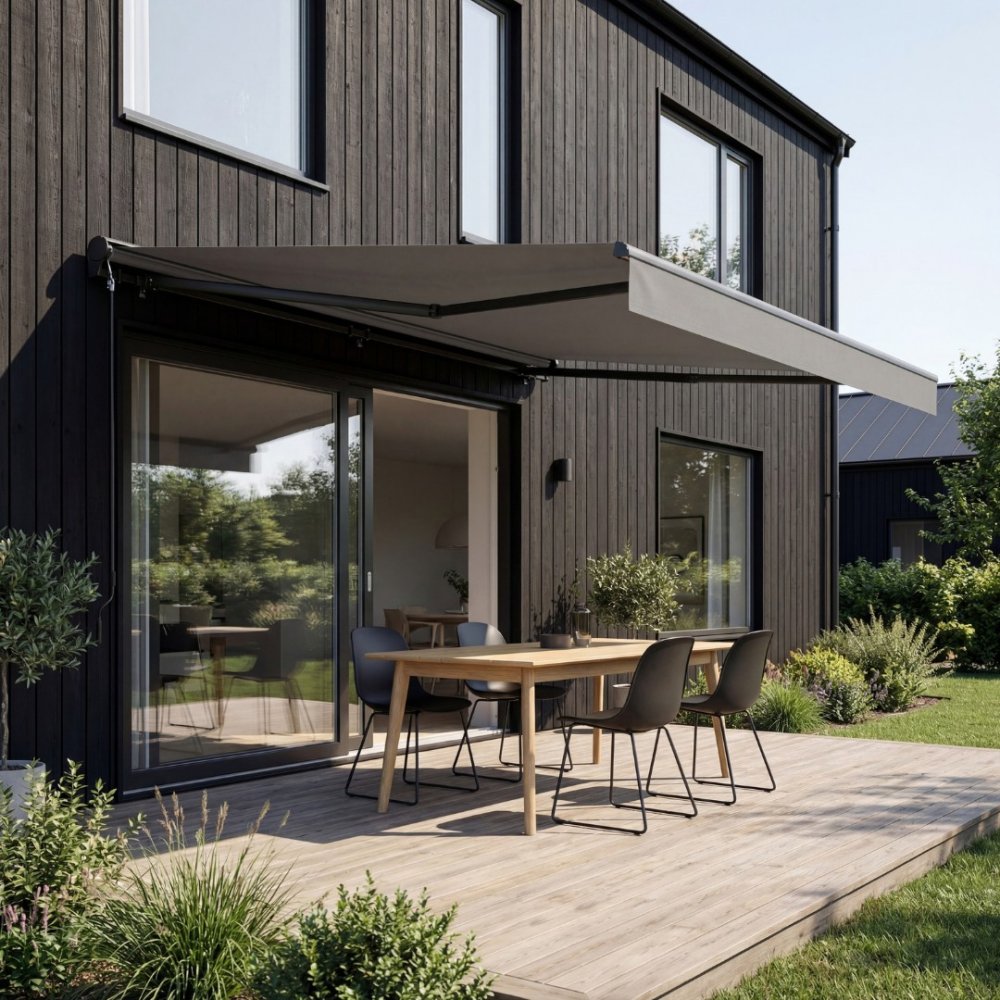 Stilren och funktionell halvkassett-markis i ljusgrått