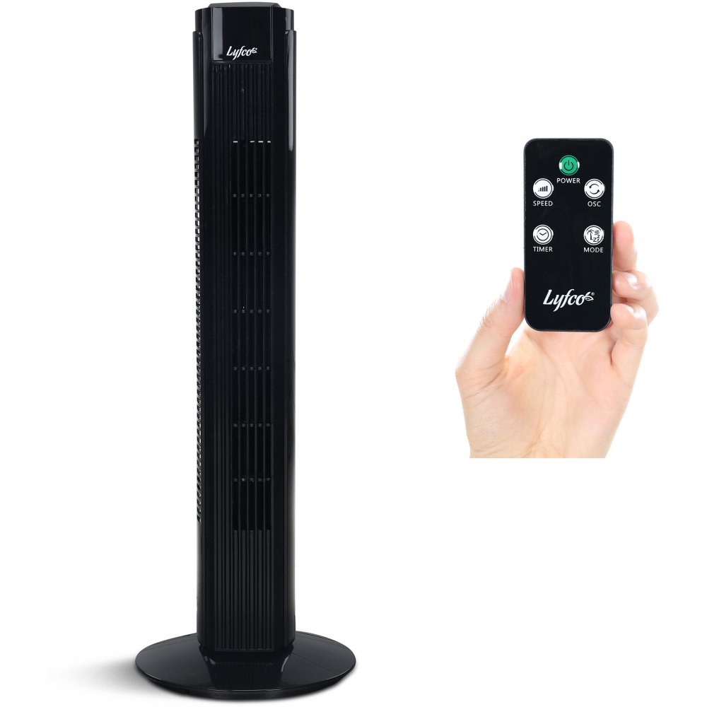 Effektiv och stark tornfläkt med fjärrkontroll som håller hemmet svalt och skönt under varma dagar. Fläkten kommer i svart slimmad design med touchpanel och LED-display som visar rumstemperatur och som enkelt styrs via fjärrkontroll. Styr fläkten enkelt från sängen eller soffan. Det har aldrig varit bekvämare att få ett svalt rum!