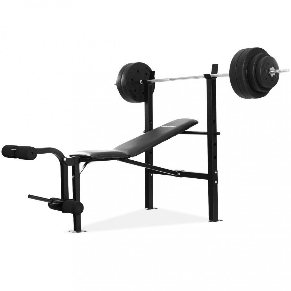 Träningsbänk med olympisk skivstång & vikter | 76kg