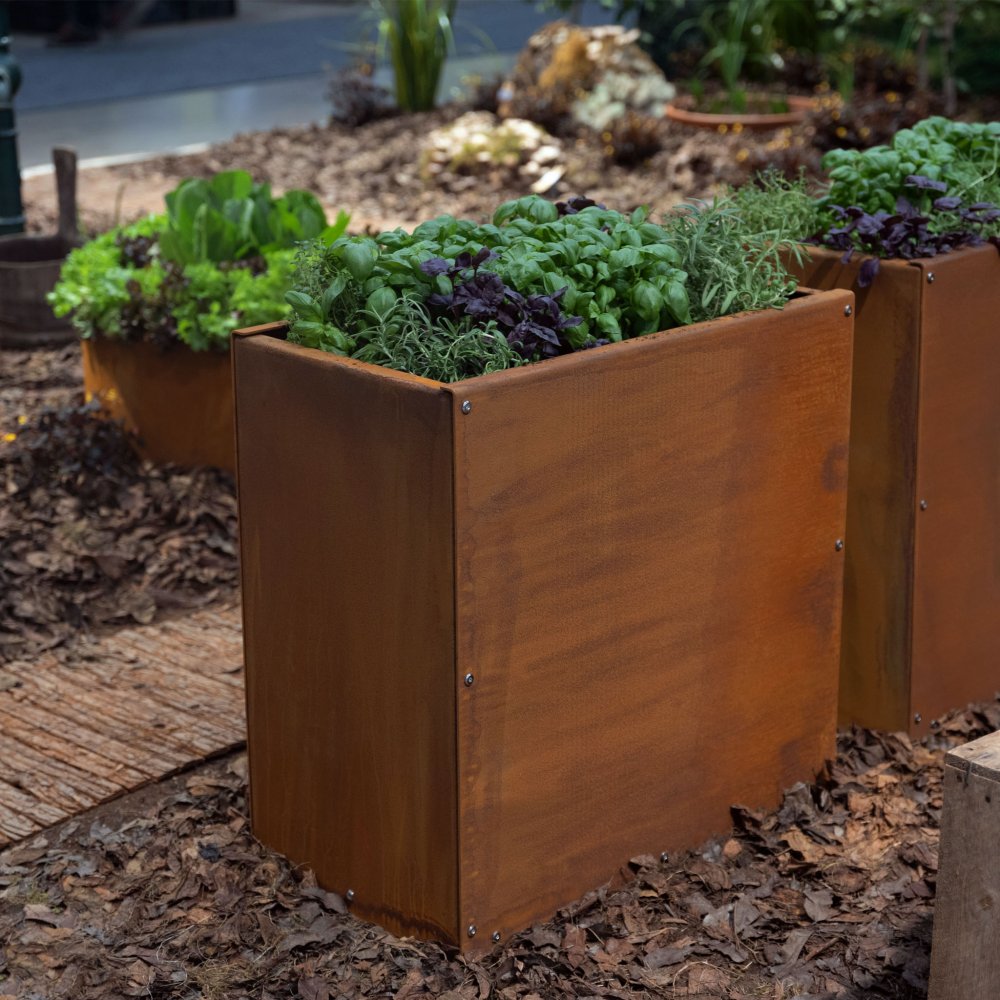 Uppfyll trädgårdsdrömmen med en kruka i trendig cortenstål, även kallat rosttrögt stål. Krukan består av kraftig 3 mm cortenstål och har en invikt kant upptill. Med sin ruffa industriella design får du både en karaktäristisk och lättskött trädgård tack vare att cortenstål inte kräver något underhåll. Krukan har måtten 65 x 37 x 65 cm. Matcha gärna planteringskrukan tillsammans med fler modeller av våra cortenstålskrukor och utomhuskrukor i olika former och storlekar .
