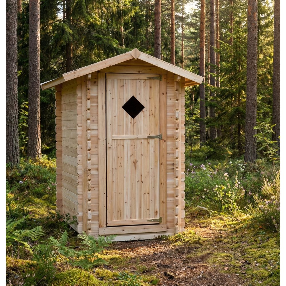 Tillverkat av högkvalitativt furuträ (fir wood), kombinerar detta utedass hållbarhet med en naturlig och tidlös design. Den naturliga träfärgen gör att det smälter in i omgivningen och skapar en harmonisk atmosfär i din utemiljö.