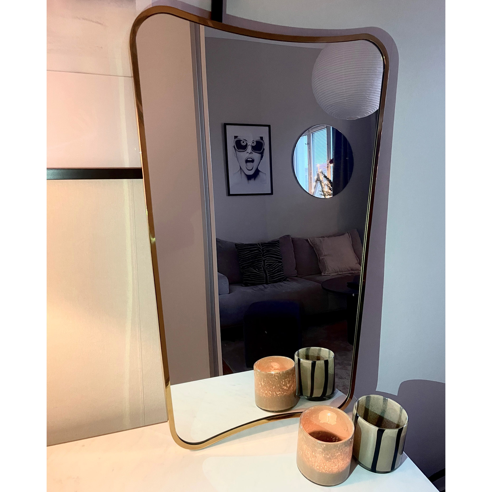 Denna stora vackra spegel med intressanta rundade former gör sig mycket väl i det moderna hemmet. Med sina retroinspirerade eleganta former ger den referenser till 50- och 60-talet, och utgör en snygg inredningsdetalj samtidigt som den praktiska storleken låter dig se hela din outfit på en gång. Med detta konstverk ger du ditt hem ett charmigt uttryck! Placera den mot väggen i sovrummet, hallen, köket eller var som helst - den här spegeln ger vilket rum som helst ett lyft. Självklart finns fästen på baksidan för enkel upphängning!