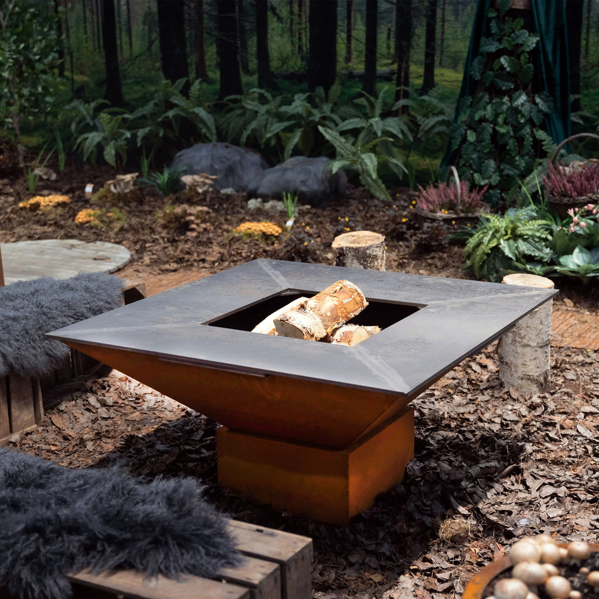 Förnya trädgårdsgrillen med denna kombinerade grill och eldstad - här får du både en mysig brasa och ett innovativt nytt sätt att laga mat utomhus! Denna grill har en unik design och är tillverkad av kraftig 3 mm cortenstål, även kallat rosttrögt stål. Den snygga och praktiska utformningen ger dig en stor yta att grilla på, och den smalare foten gör att du kan röra dig friare runt grillen. Här får du goda grillmöjligheter och har dessutom möjlighet att förvara ved i det öppna facket under grillytan. Med sin ruffiga industriella design får du en välplanerad konstellation av iögonfallande design, praktikalitet och funktionalitet - cortenstål är nämligen inte bara fint att titta på, utan är otroligt lättskött då det inte kräver något underhåll.