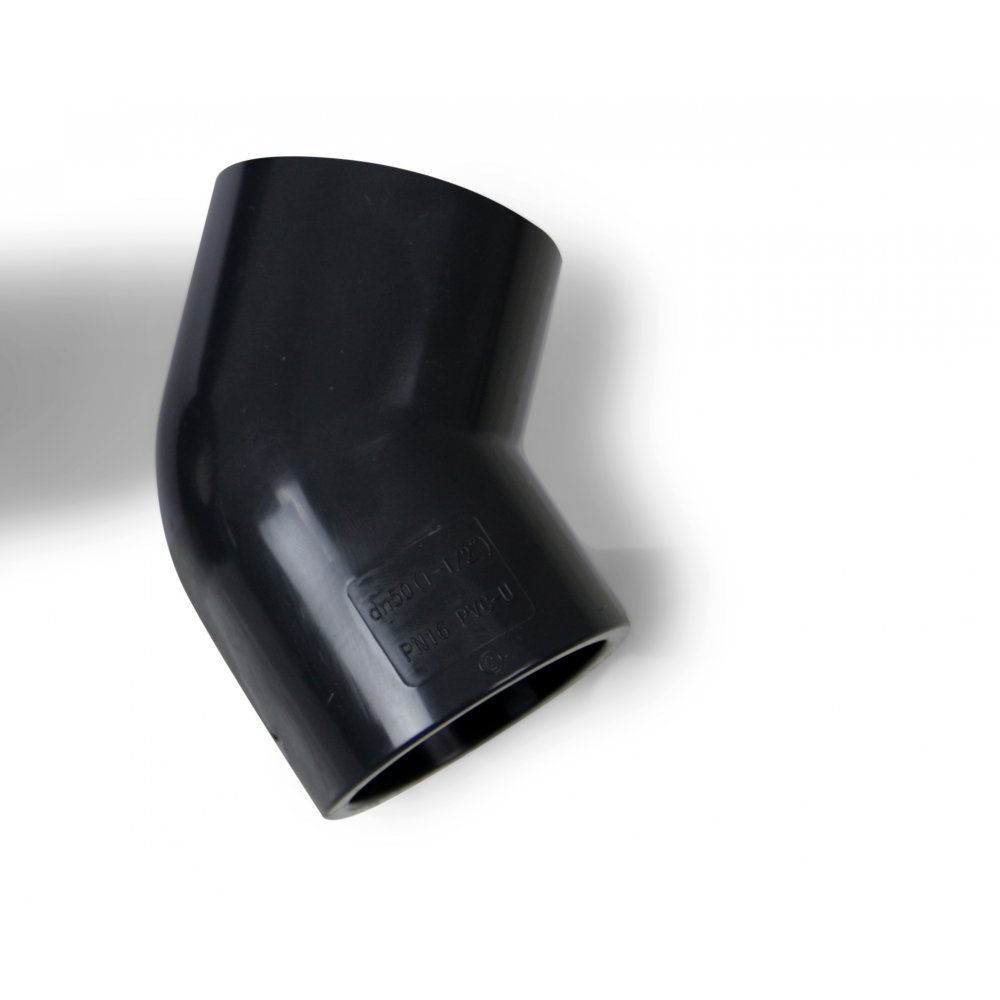 Vinkel 45 grader för 50mm rör. Standard DIN. Material: U-PVC.