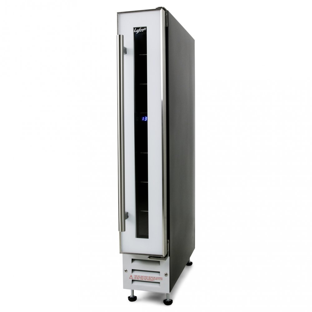 Vinkyl för inbyggnad som rymmer 7 vinflaskor. Bredd 150mm. Höjd 870mm. Höjden kan finjusteras med skruvfötter och minimumhöjden är 870mm och maximal höjd är 930mm.Specialdesignad version i vit design, med hyllor av kromat galler. Perfekt för dig som vill ha ett helt vitt kök.
